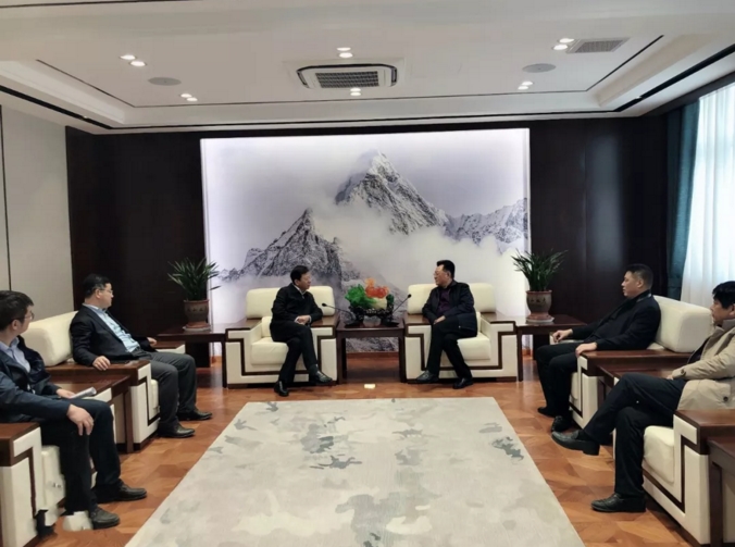 (市委书记张建华与董事局主席沈良兵在集团接待室亲切交谈)